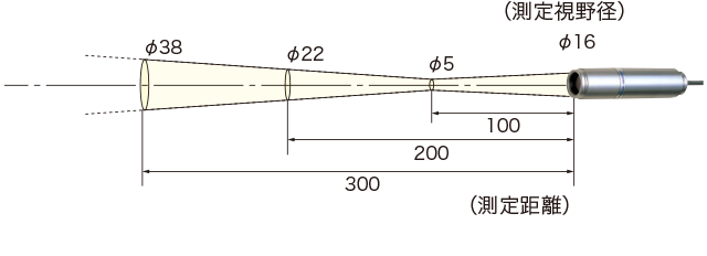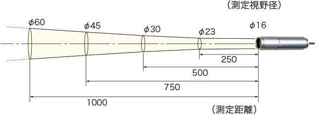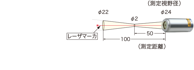 实现了测量 φ2 mm 的微观物体发热的视野设计。 此外,它还配备了指向测量视场中心的视场同轴激光打标机,因此可以一目了然地看到测量点。 即使是最小的物体也可以精确瞄准,从而更容易定位传感器安装。