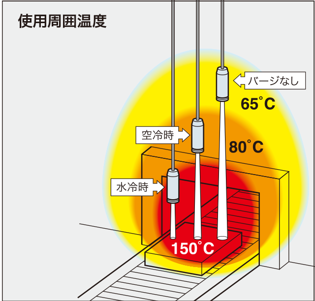 当与可选的水冷式吹扫管 BS-WP1 结合使用时,可以进一步提高耐环境性。 水冷时,它可以承受高达 150°C 的热量。 它还可以用作空气净化器,通过将空气吹到镜头表面来保护镜头免受灰尘和污垢的影响。
