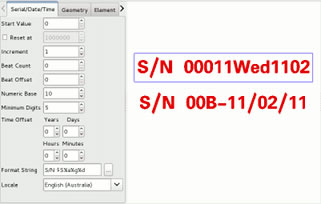 外部的序列号,日期,时间,数据等动态元素;它们可以与(1)文本和条形码元素结合使用;(2)支持所有TrueType™字体和样式以及速度优化的激光字体的文本;(3)支持DataMatrix,PDF417,EAN,UPC,GTIN,MaxiCode,Aztec,Codabar,USPS,EIHBCC代码等的条形码