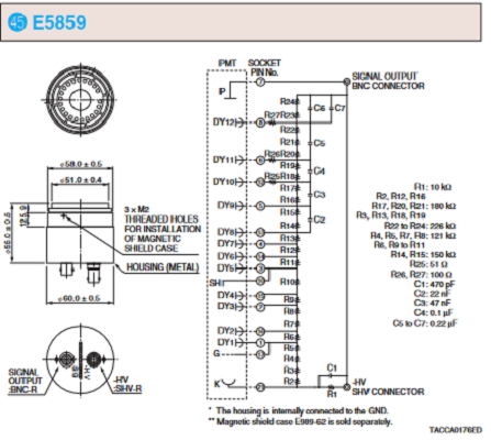 HAMAMATSU滨松 D型插座组件 E5859 详细参数 适用的 PMT 51 mm、76 mm 端窗型 电源电压极性 - [Max. Rating] 绝缘电压(机箱 - 引脚) 2700 V [Max. Rating] 电源电压 2700 V [Max. Rating] 分压器电流 0.67 mA 信号漏电流最大值 1.0 x 10-10 A 总分压器电阻 4.06 MΩ 最大值 DC 模式下的线性输出 33(2700 V 时)μA 备注 带后面板连接器   0755-89355351  手机/微信:13242449659 QQ:842471885...