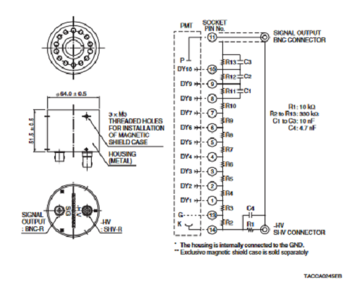 HAMAMATSU滨松 D型插座组件 E6133-04 详细参数 适用的 PMT 适用于高磁环境 25 mm 电源电压极性 + [Max. Rating] 绝缘电压(机箱 - 引脚) 2500 V [Max. Rating] 电源电压 2500 V [Max. Rating] 分压器电流 0.45 mA 总分压器电阻 5.62 MΩ 备注 适用于 R5505,带连接器   0755-89355351  手机/微信:13242449659 QQ:842471885