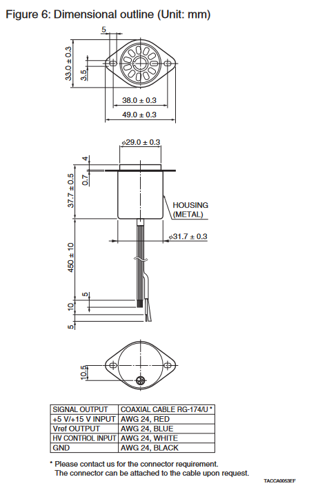 | [HV Power Supply] 建议的输出电压范围 | -200 至 -1200 V |