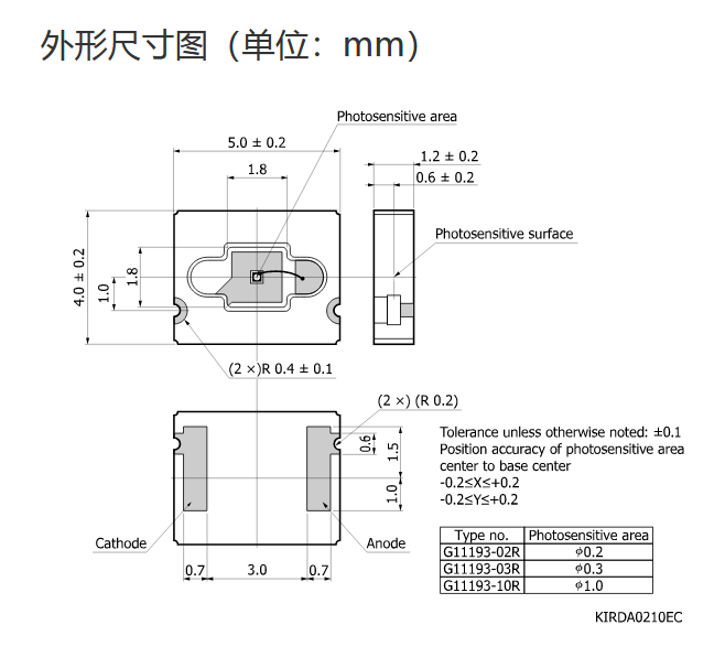 HAMAMATSU滨松 InGaAs PIN 光电二极管 G11193-02R