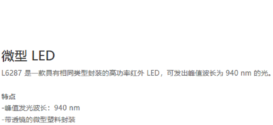 | 峰值发光波长(典型值) | 940 nm |