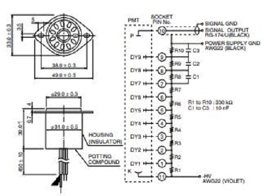 | 倍增器电极结构 | 圆形罩壳 |
