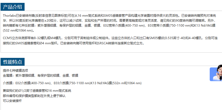 THORLABS转向棱镜CCM5-K13(M) 手机/微信:13242449659电话:0755-89355351 QQ:842471885 邮箱:842471885@qq.com