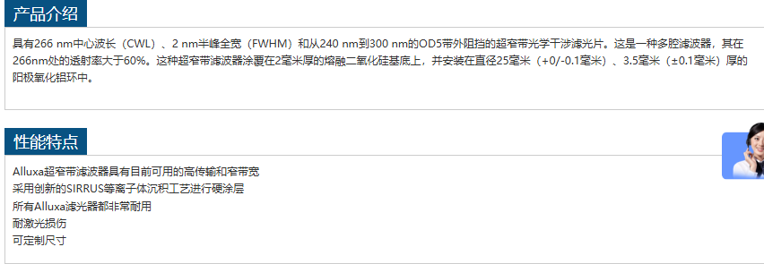 Alluxa超窄带滤波器266-2 OD5 手机/微信:13242449659电话:0755-89355351 QQ:842471885 邮箱:842471885@qq.com