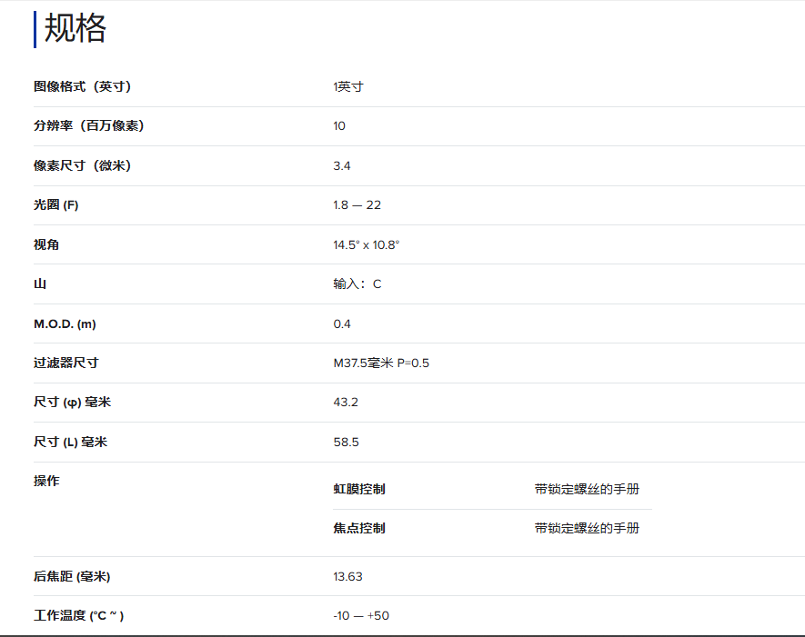TC5018-10MP 机器视觉镜头
