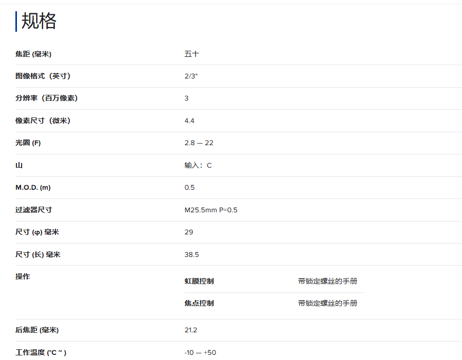 TC5028-3MPG 机器视觉镜头