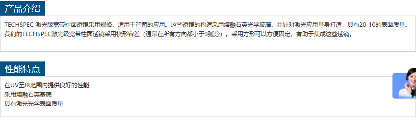 EDMUND OPTICS激光级宽带柱面透镜#36-107 手机/微信:13242449659电话:0755-89355351 QQ:842471885 邮箱:842471885@qq.com