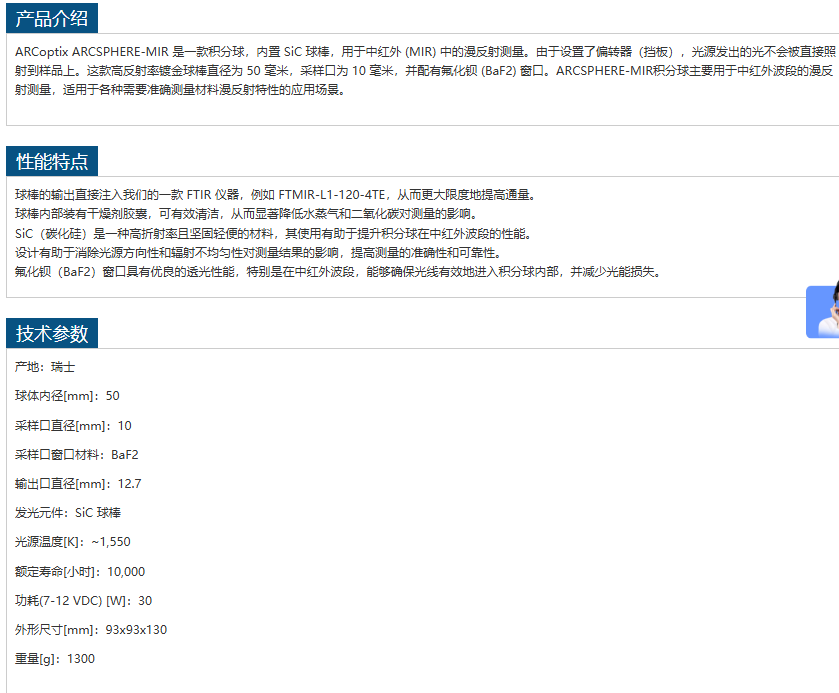 ARCOPTIX积分球ARCSPHERE-MIR 手机/微信:13242449659电话:0755-89355351 QQ:842471885 邮箱:842471885@qq.com