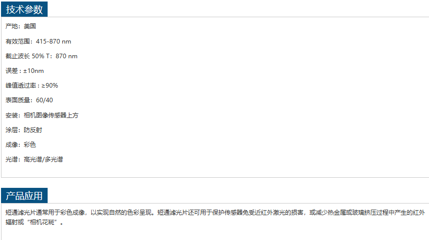 MIDOPT多光谱短通滤光片SP870 手机/微信:13242449659电话:0755-89355351 QQ:842471885 邮箱:842471885@qq.com