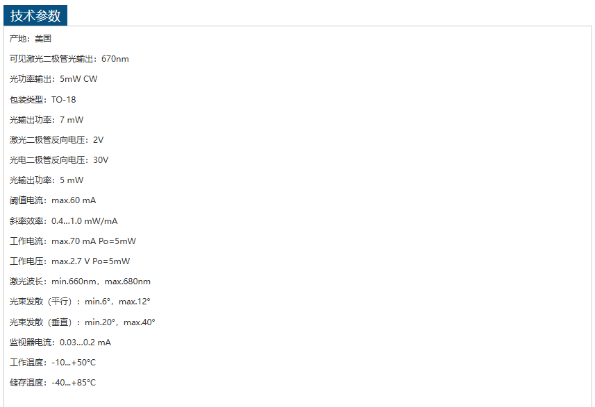 US-Lasers激光二极管D670-5 手机/微信:13242449659电话:0755-89355351 QQ:842471885 邮箱:842471885@qq.com