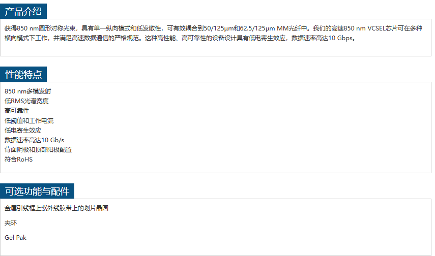COHERENT多模VCSEL芯片APA7501010009 手机/微信:13242449659电话:0755-89355351 QQ:842471885 邮箱:842471885@qq.com