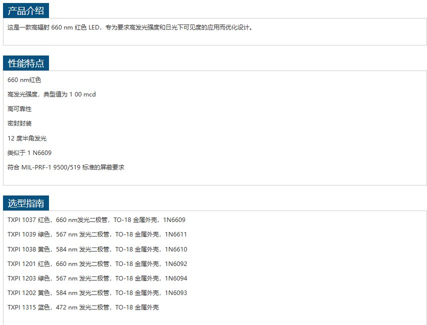 Texas Photonics发光二极管TXPI 1037 手机/微信:13242449659电话:0755-89355351 QQ:842471885 邮箱:842471885@qq.com