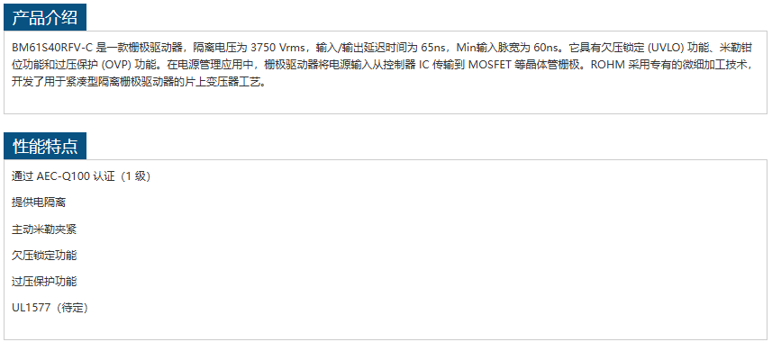 ROHM栅极驱动器BM61S40RFV-C