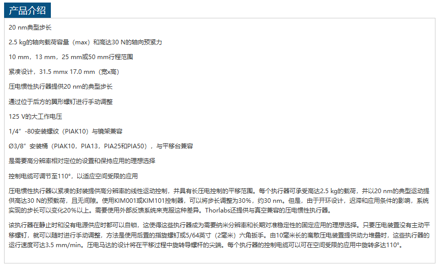 THORLABS压电惯性执行器PIA50 手机/微信:13242449659电话:0755-89355351 QQ:842471885 邮箱:842471885@qq.com
