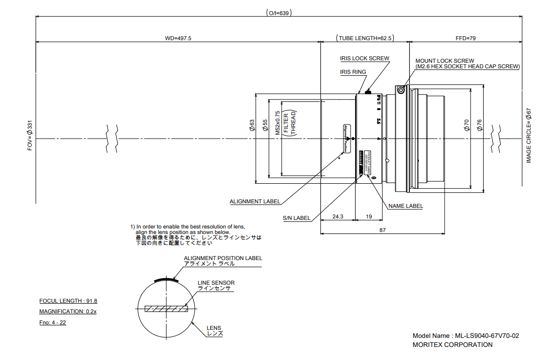 MORITEX 茉丽特 ML-LS9040-67V70-02 工业镜头