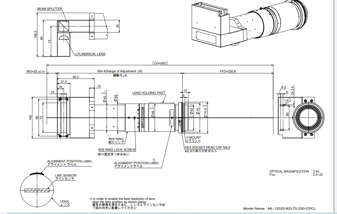 MORITEX 茉丽特 ML-12025-82V70-250-CPCL 工业镜头 规格 规格 ML-12025-82V70-250-CPCL 焦距 (mm) 119.17 F# 2.5-22 最大像面(mm) 82 OI(mm) 548.7 WD(mm) 73.5 倍率(x) 2.5 TV畸变(%) -0.05 MTF 100lp/mm 接口 V70 相对照度(%) 98 同轴模块 O 手机/微信:13242449659电话:0755-89355351 QQ:842471885 邮箱:842471885@qq.com