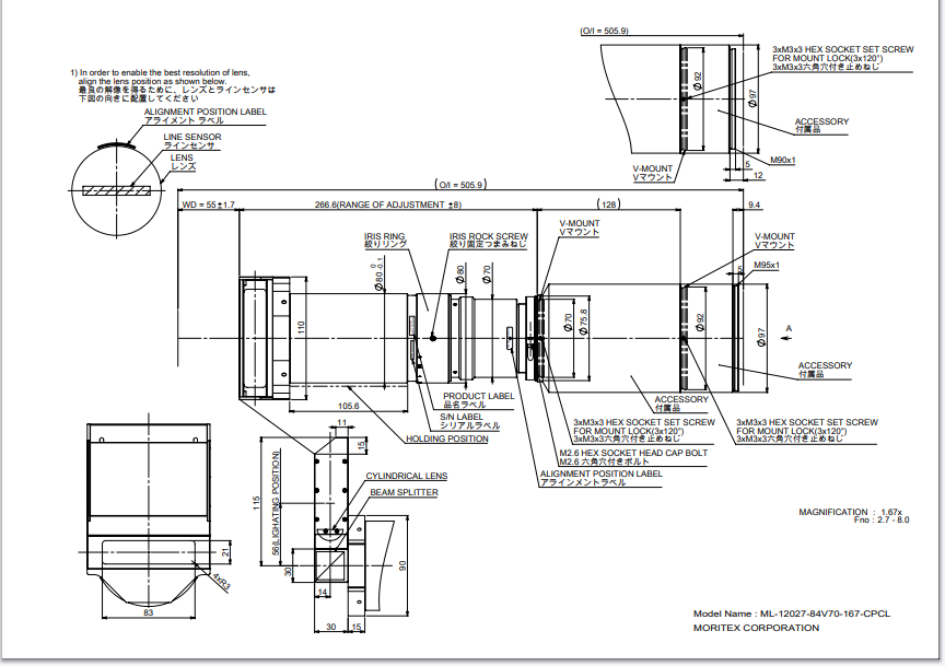MORITEX 茉丽特 ML-12027-84V70-167-CPCL 工业镜头