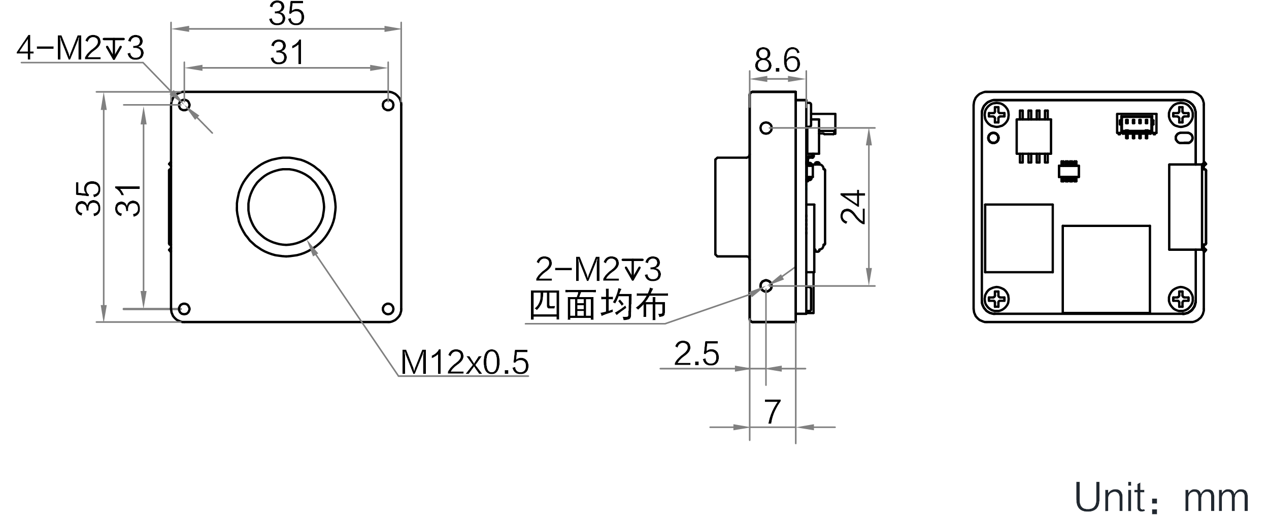 | 名称 | 1200万像素USB 3.0板级相机,IMX226,黑白,M12口 | |