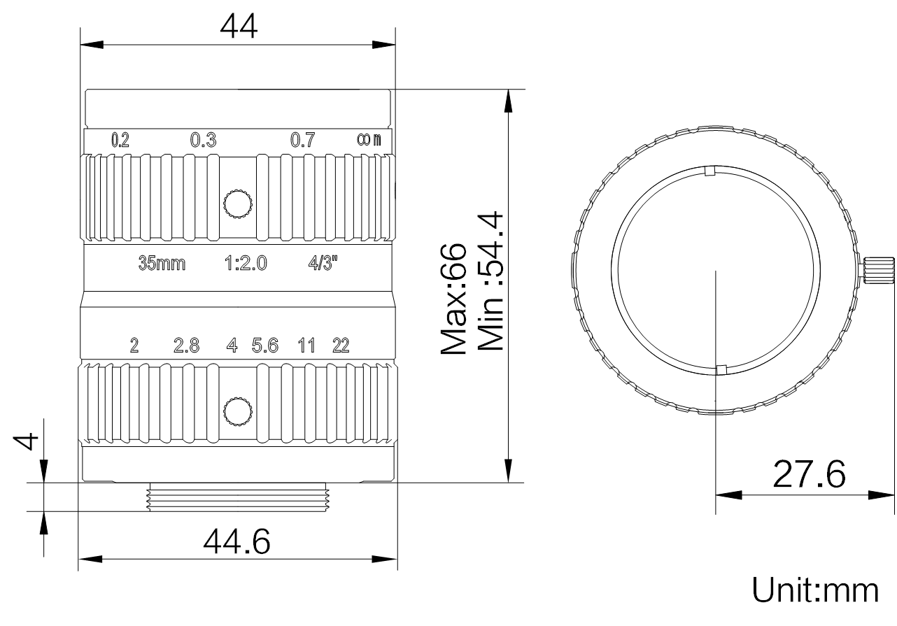 | 名称 | 35mm,F2.0,4/3",1000万分辨率,C接口镜头 | |