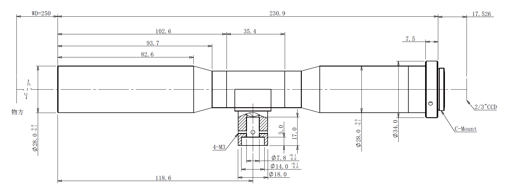 | 名称 | 250mm工作距,2/3",0.8x,带同轴光接口 | |