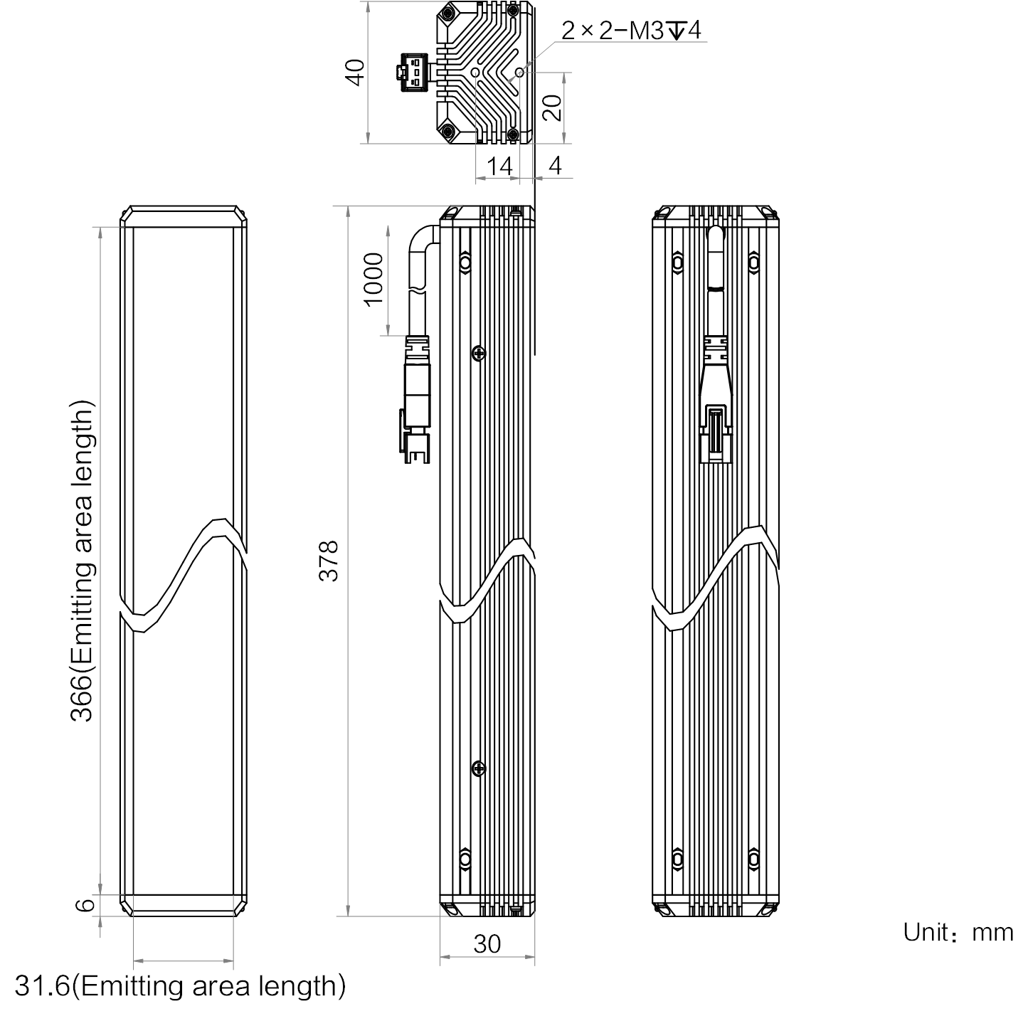 | 发光区尺寸 | 366 mm × 31.6 mm | |