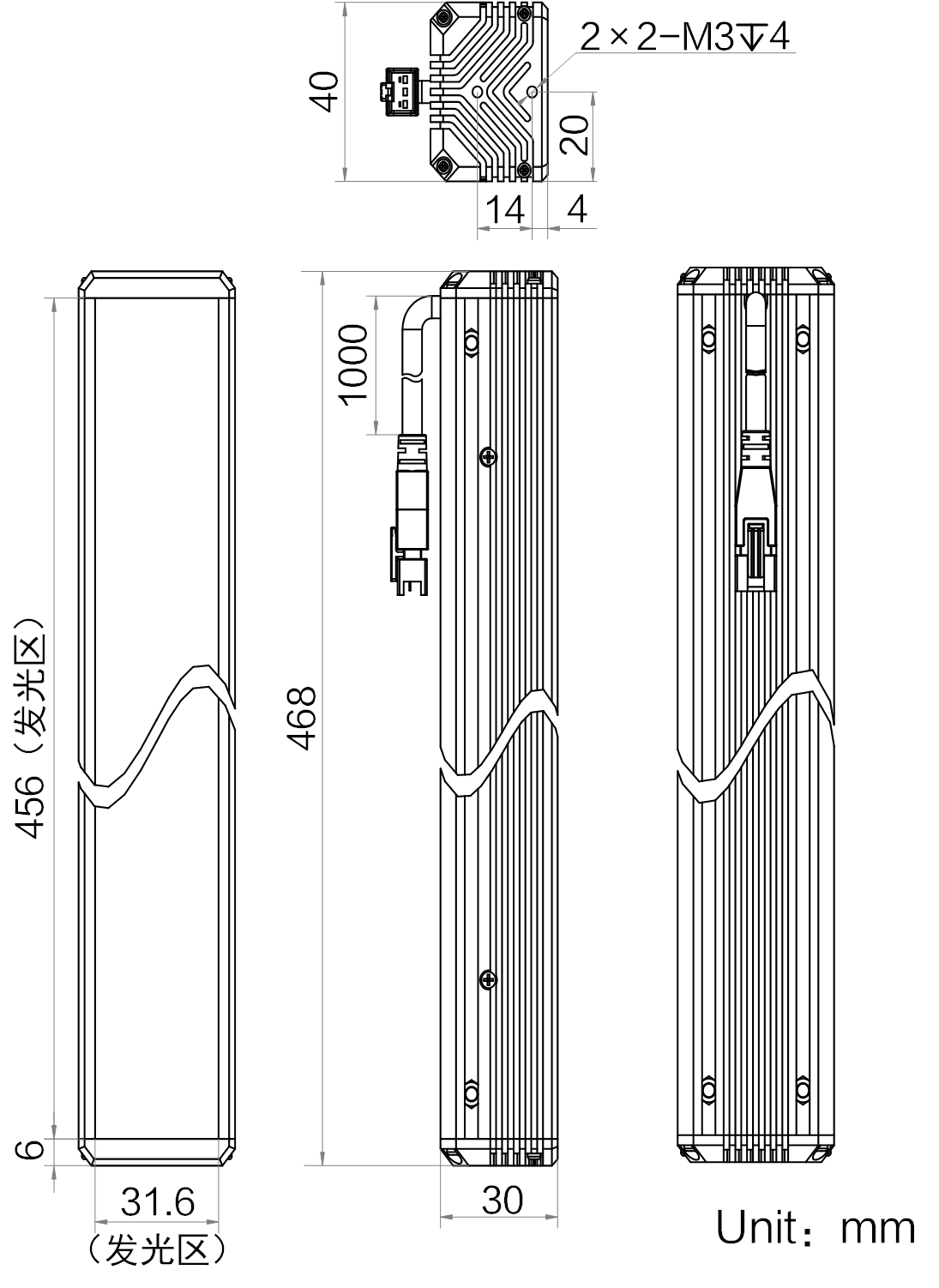 | 发光区尺寸 | 456 mm × 31.6 mm | |
