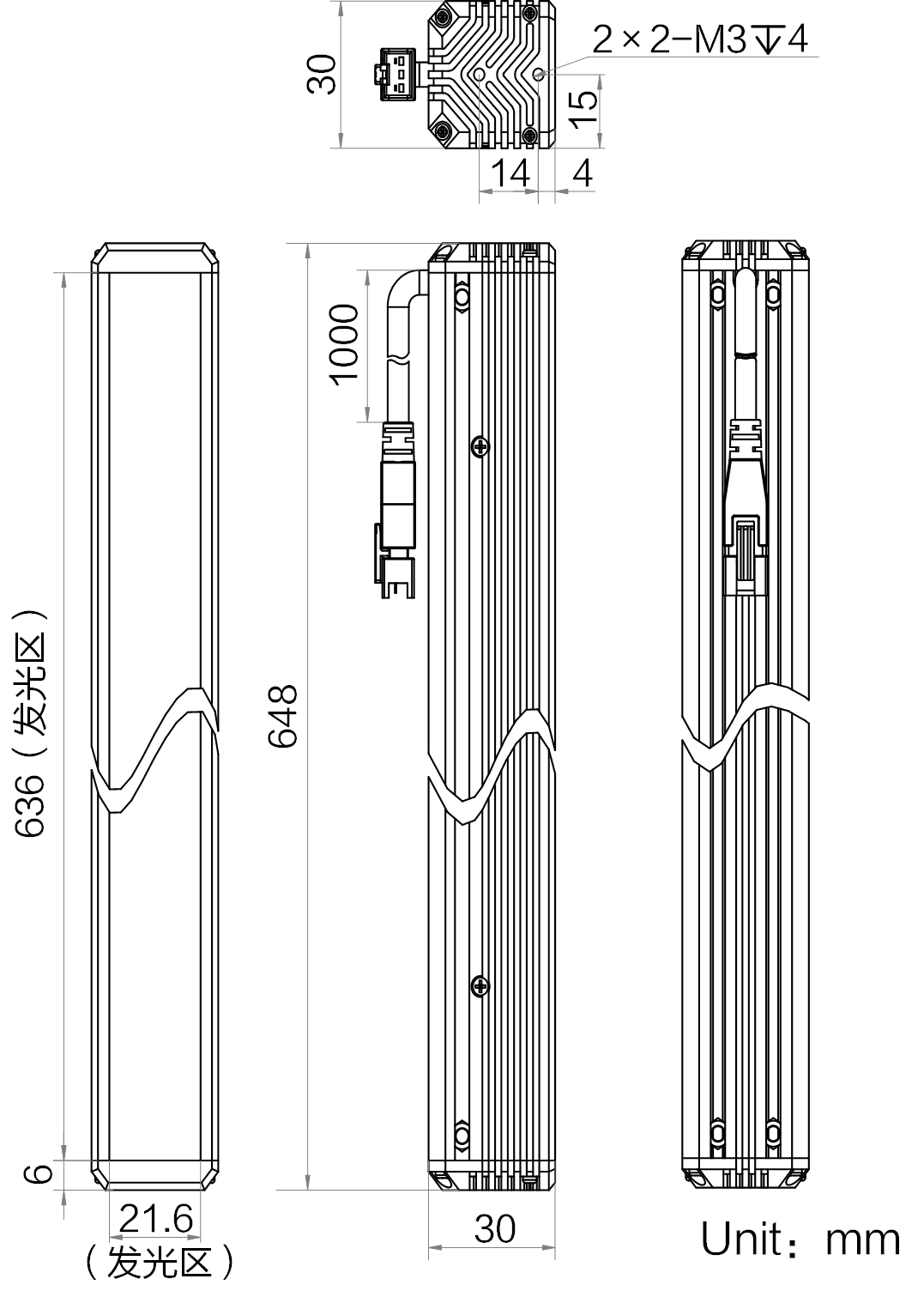 | 发光区尺寸 | 636 mm × 21.6 mm | |