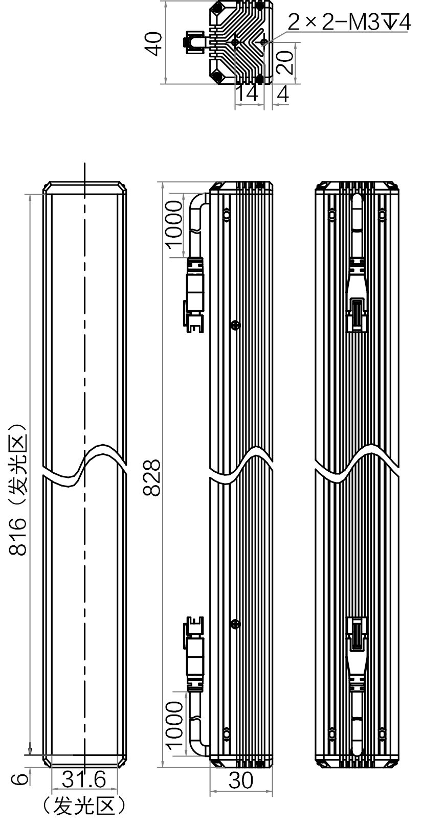 | 发光区尺寸 | 816 mm × 31.6 mm | |