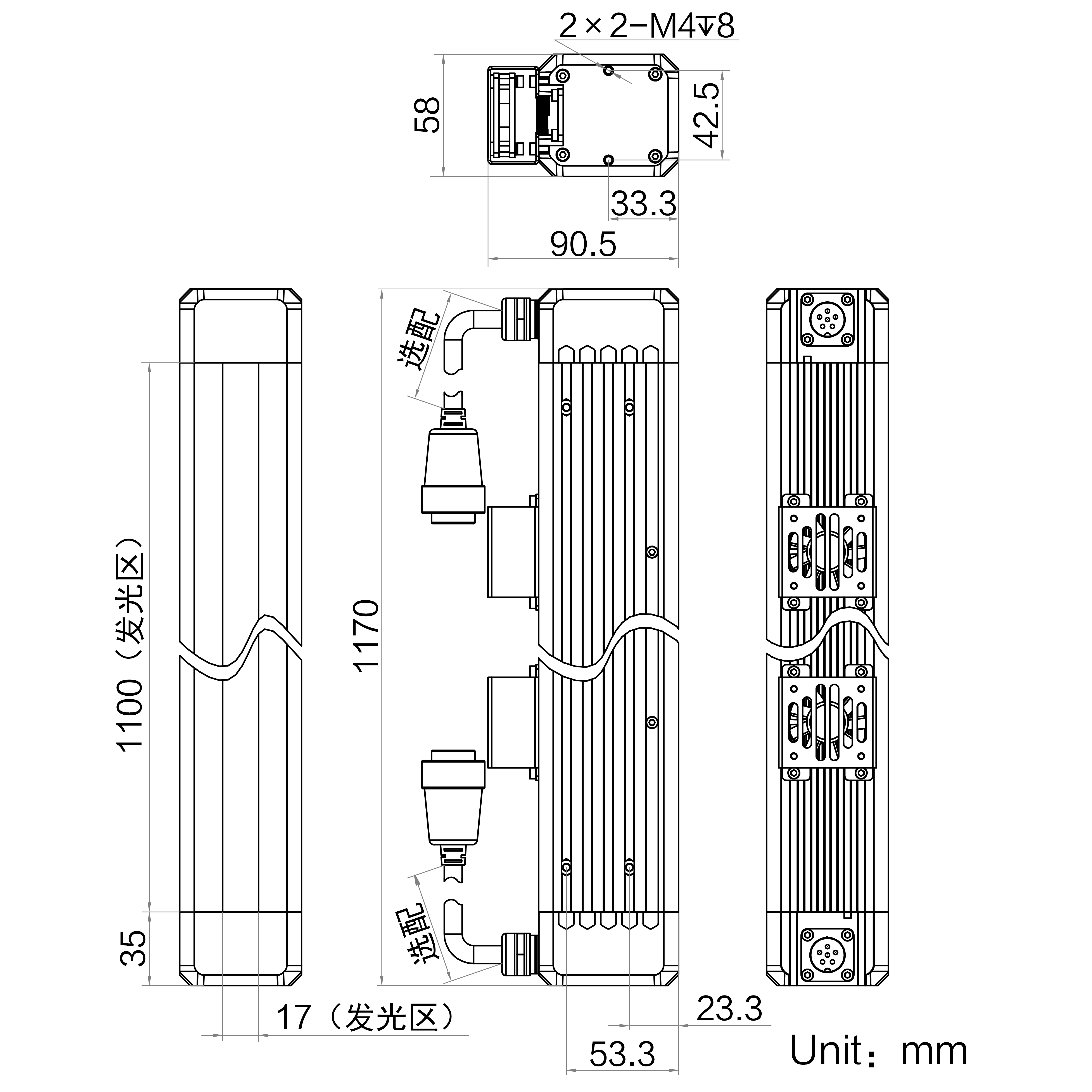 | 发光区尺寸 | 1100 mm × 17 mm | |