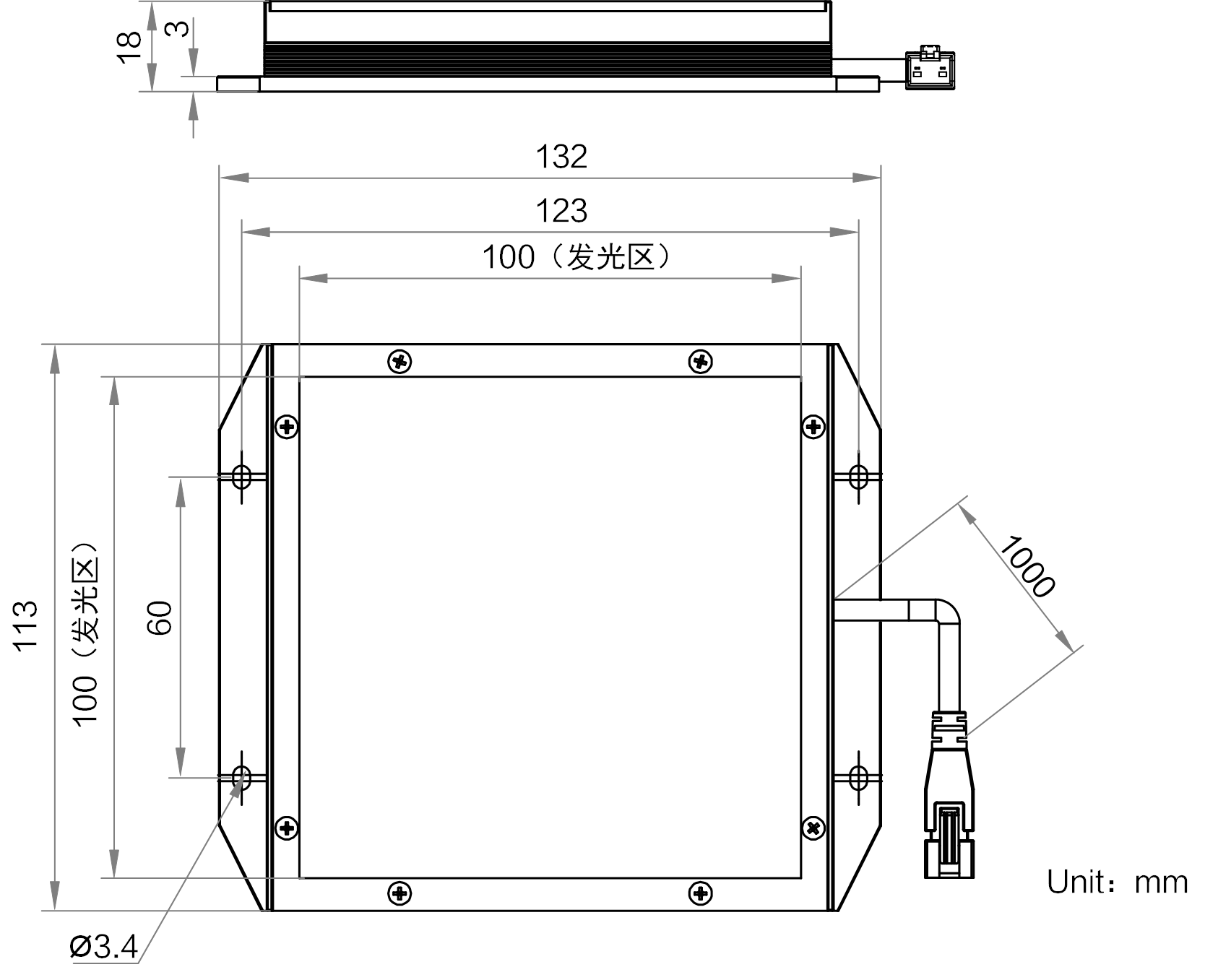 | 发光区尺寸 | 100 mm × 100 mm | |