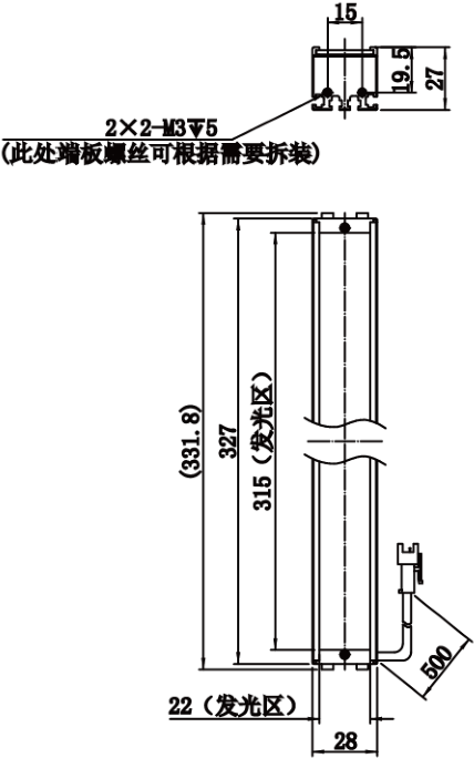 | 发光区直径 | 315 mm × 22 mm | |