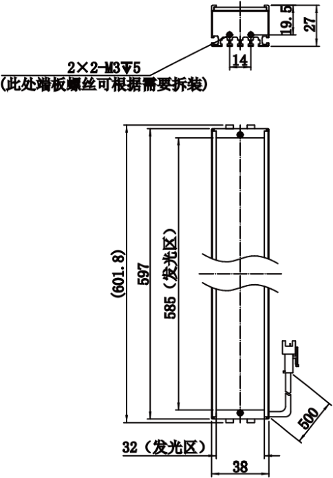 | 发光区直径 | 585 mm × 32 mm | |