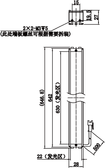 | 发光区直径 | 630 mm × 22 mm | |
