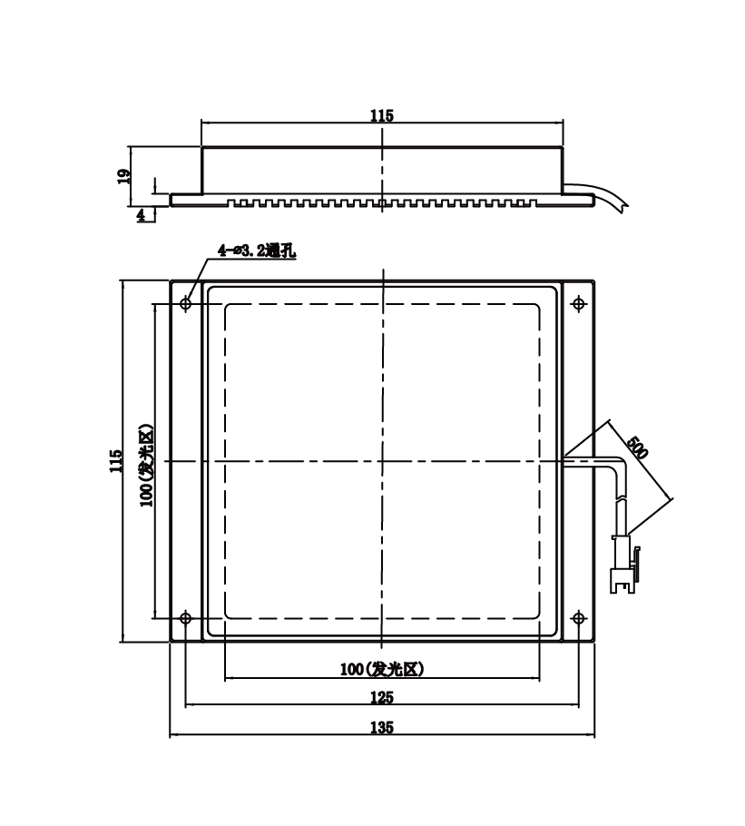 | 发光区尺寸 | 100 mm × 100 mm | |