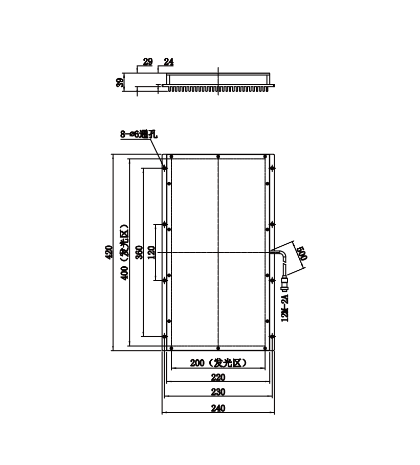 | 发光区尺寸 | 400 mm × 200 mm | |