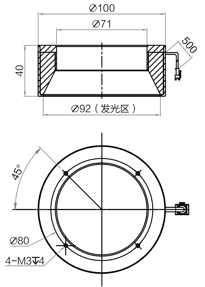 | 发光面外径 | Φ92 mm | |